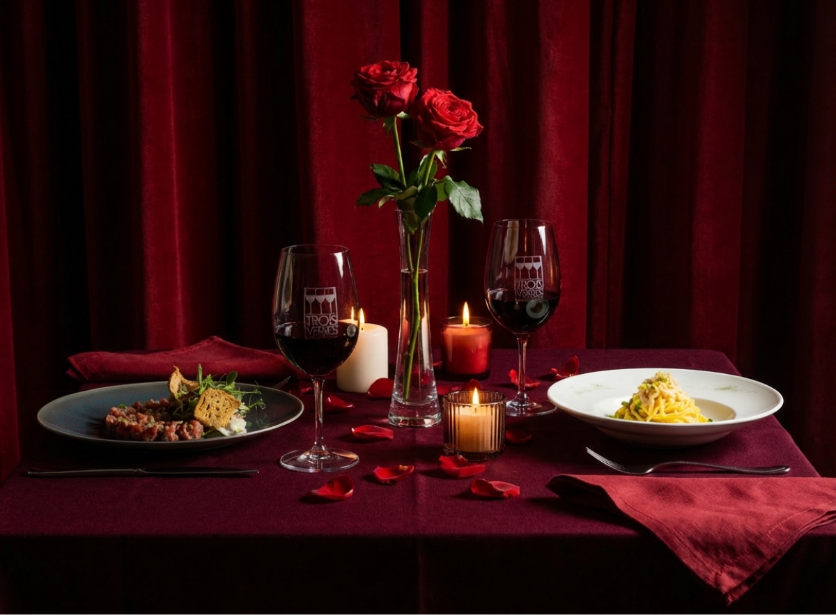Une soirée d’exception aux Trois Verres : un menu exclusif imaginé par le Chef, pensé pour célébrer la Saint-Valentin avec élégance et délicatesse.